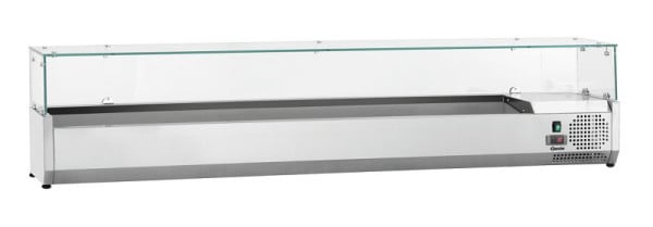 Mit Platz für bis zu 10x 1/4 GN Behälter ist die Kühlaufsatzvitrine GL3-2005 mit Glasaufsatz die perfekte Ergänzung zum Pizzakühltisch G-S7T2.