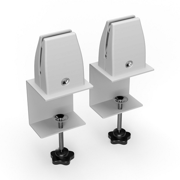 Tischklemmen, 90 Grad Drehung der Paneele/Klemme möglich, für AKUSTIX Vario (eco) inkl. Zubehör, Aluminium Druckguss, einseitig, mit Klemmgriffschraube, Klemmbereich Akustikmodul: 3-20 mm, Klemmbereich Tischplatte: 12-52 mm, 1x DIN 912 M6x16 mm, 1x DIN 912 M6x25 mm