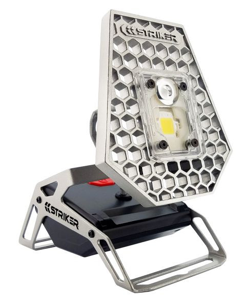 Die Arbeitsleuchte verfügt über eine variable Linse. Sofern sich diese in der oberen Position befindet, erzeugt die verbaute COB-LED über 1.200 Lumen und streut das Licht um nahezu 180 Grad, wodurch eine massive Lichtflut entsteht. Wenn sich die variable Linse über die LED befindet, wird das Licht auf etwa 120 Grad fokussiert, wodurch ein "Hotspot" entsteht. Zudem kann die verbaute LED mit vier verschiedenen Leuchtmodi (hoch, mittel, niedrig, stroboskopisch) angesteuert werden.