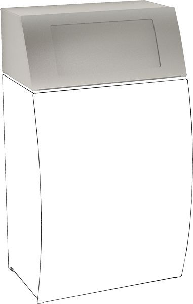 Klappdeckelaufsatz für Abfallbehälter STRX607, Chromnickelstahl, Oberfläche seidenmatt, Materialstärke 1,5 mm, abgeschrägte Front mit selbstschließendem Klappdeckel, mit InoxPlus Oberflächenveredelung zur Reduzierung von Fingerabdrücken und besseren Reinigungseigenschaft (easy to clean), Zylinderschloss mit KWC Einheitsschlüssel, inklusive Edelstahlschrauben und Dübel.