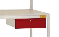 Das Einzelschubfach hat eine Breite von 425 mm, eine Tiefe von 550 mm und eine Blendenhöhe von 135 mm. Es ist aus Stahl gefertigt und im 36 mm Raster gelocht. Das Schubfach ist in Rubinrot RAL 3003 leitfähig hochwertig pulverbeschichtet. Für mehr Ordnung und Übersicht können Sie Ihre Schubfächer mit Schubfachunterteilungen bestücken. Bitte beachten Sie, dass pro Tisch nur ein Einzelschubfach angebracht werden kann.