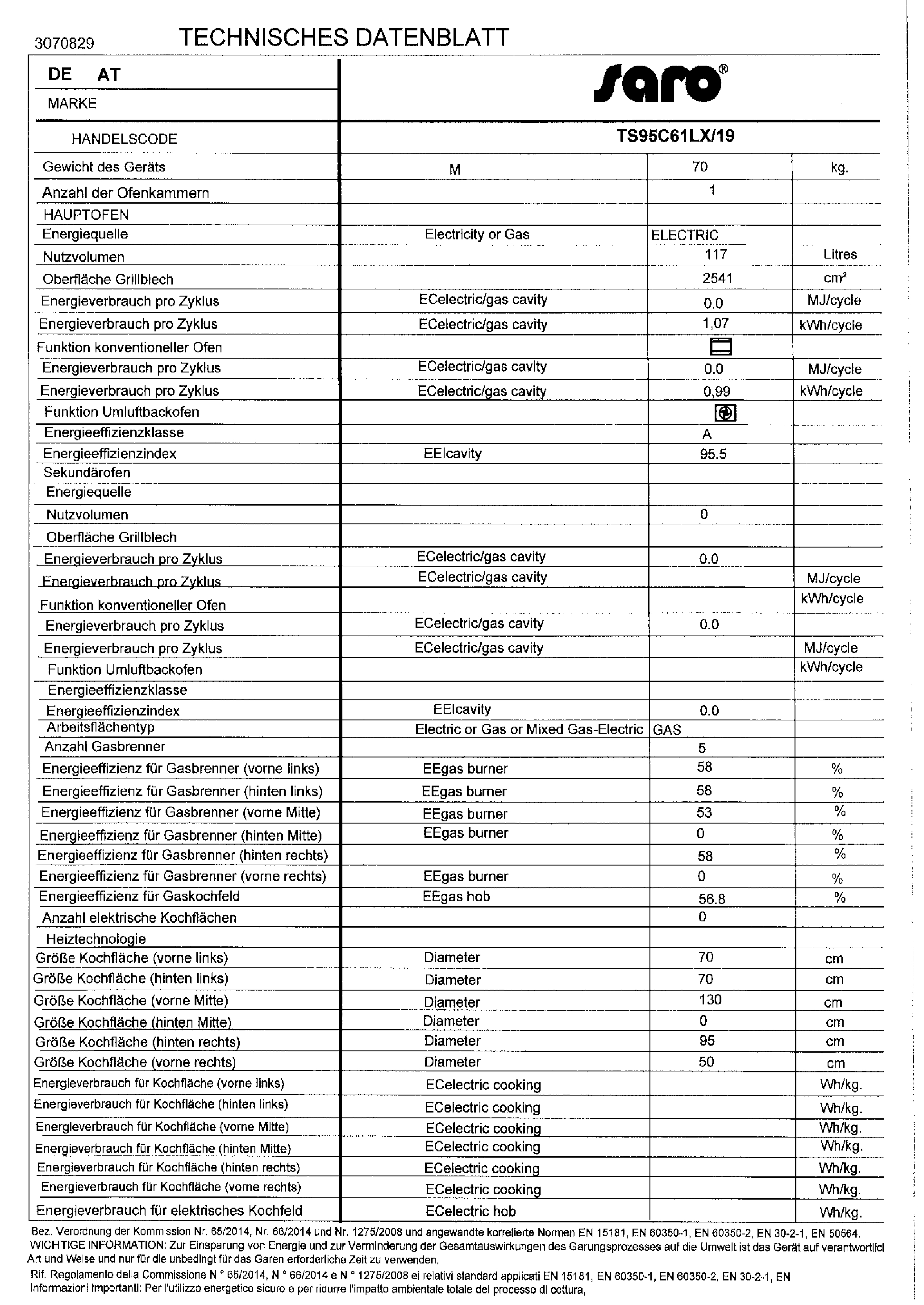 Produkt Saro Multifunktionsherd Gas/Elektro Modell TS95C61LX, 331-11 Vergleichen