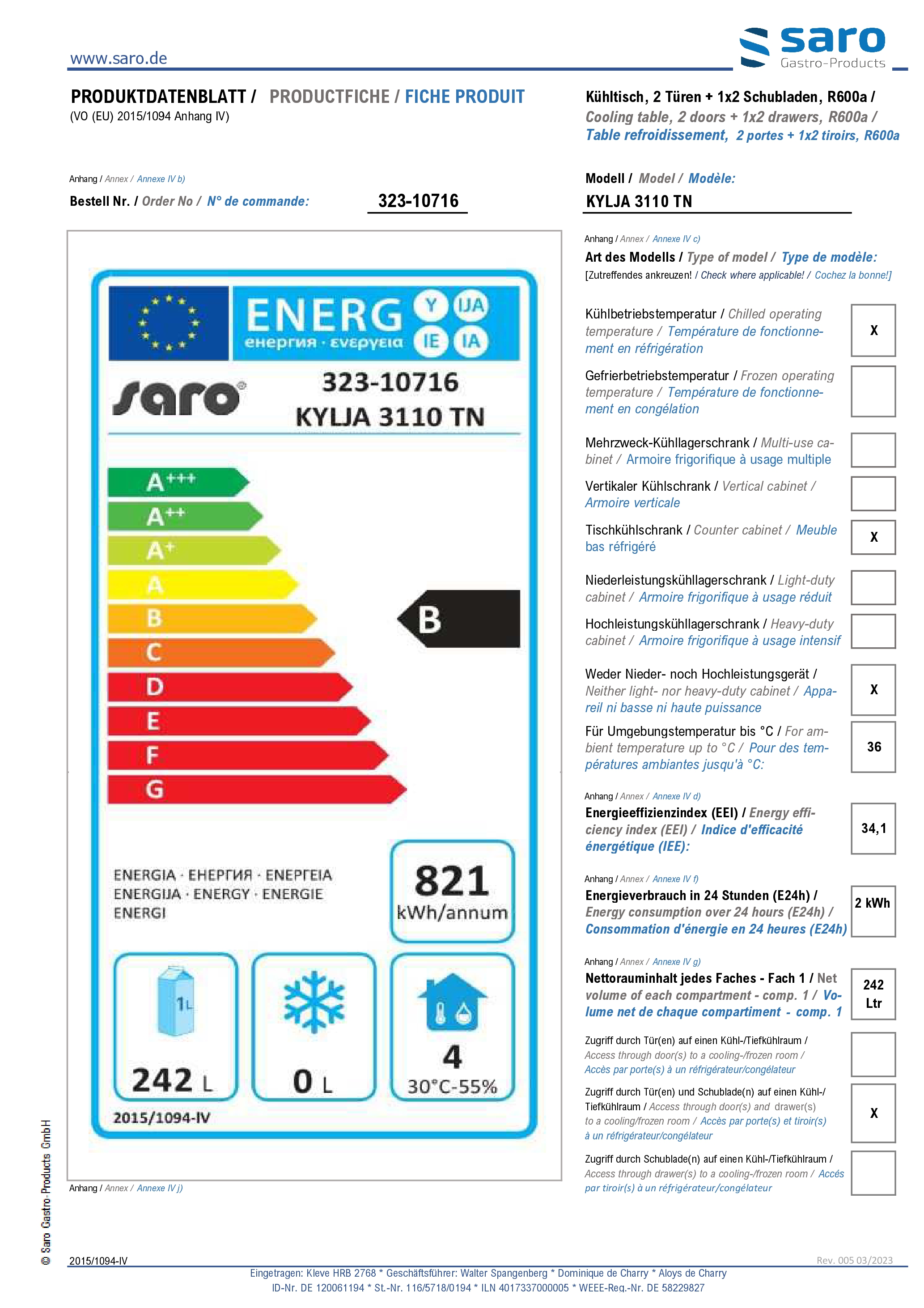 Produkt Saro Kühltisch inkl. 2er Schubladenset Modell KYLJA 3110 TN, Vergleichen