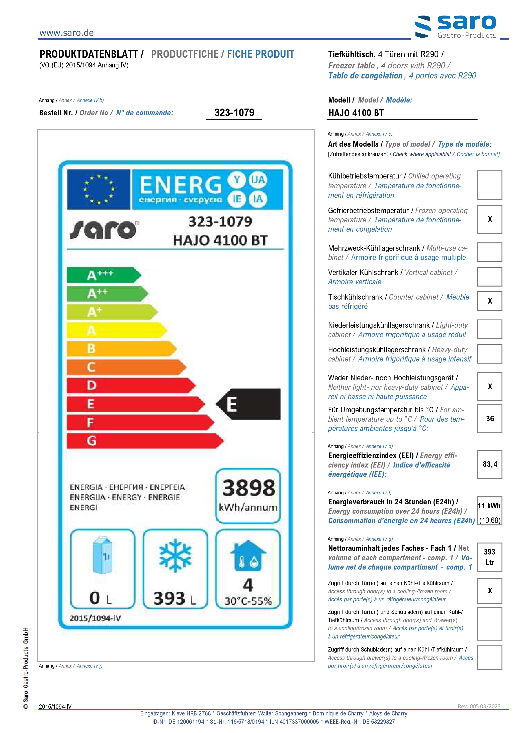 Produkt Saro Tiefkühltisch Modell HAJO 4100 BT, 323-1079, 4017337323 Vergleichen