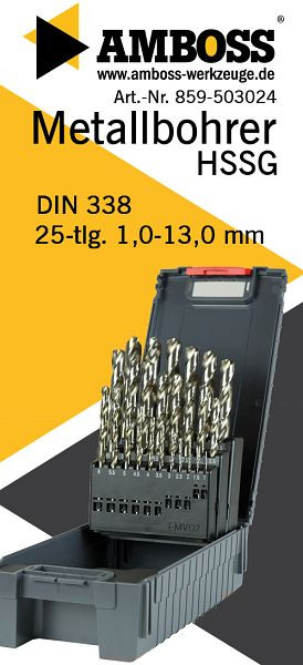Amboss Werkzeuge HSS G Spiralbohrer-Set (DIN 338), Satz 25 teilig Ø 1 - 13 mm, 859-503024