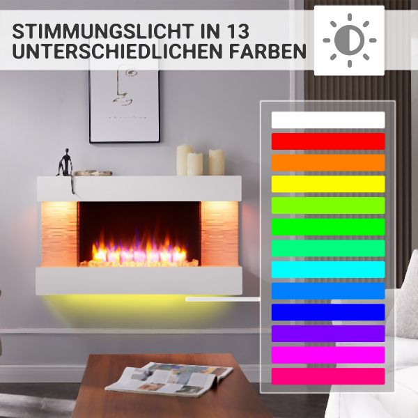 - Kontrolle über Flammeneffekt, Ambientebeleuchtung, Glutbett, Heizung, Temperatur und Timer