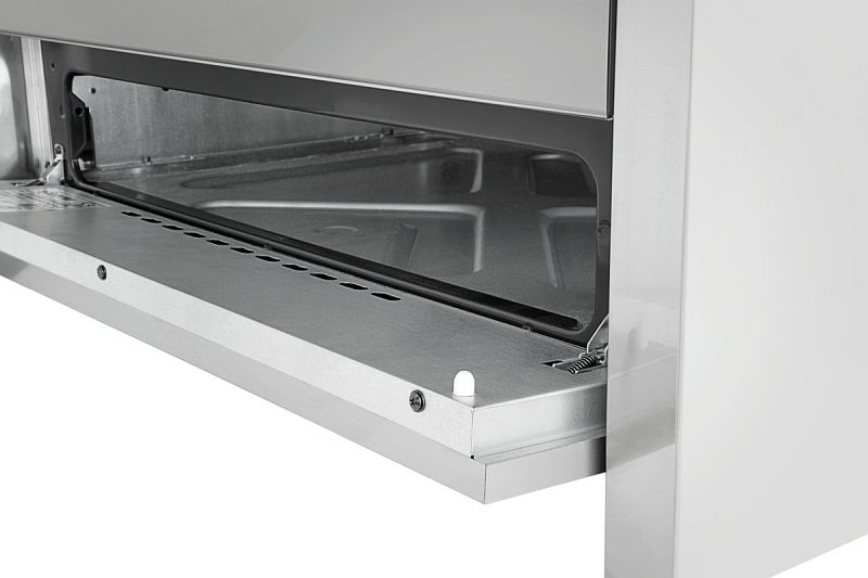 - Backofen-Eigenschaften: 3-fach-Verglasung, Backofenbeleuchtung, Timer, Versiegelter Garraum, Staufach unter dem Backofen: B 660 x T 450 x H 120 mm