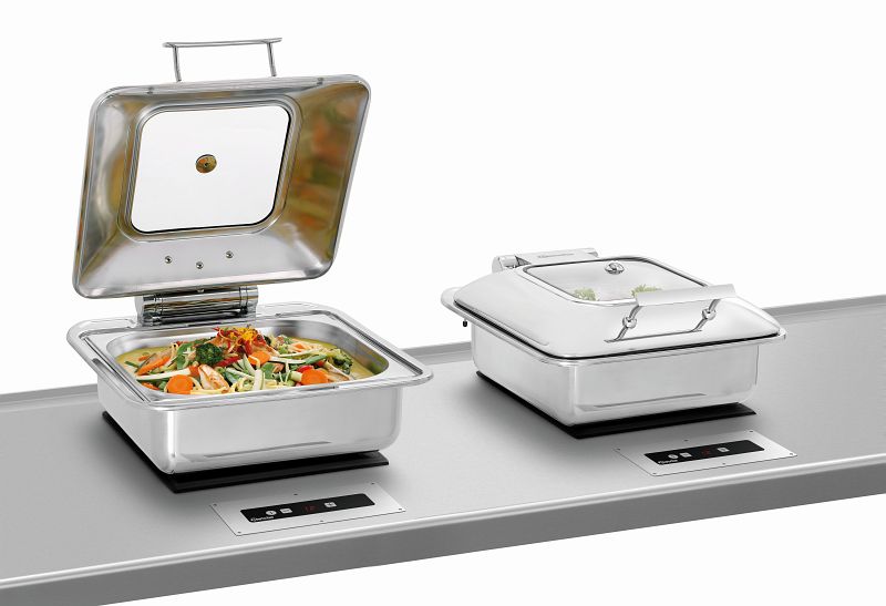 Die Warmhaltplatte als Einbauvariante ist mit der schlichten Optik in jeglicher Form der Speisenausgabe die ideale Lösung. Für einen einheitlichen Look lassen sich mit dem optional erhältlichen Kabel 4 Geräte in einem Stromkreis verbinden und schalten.
