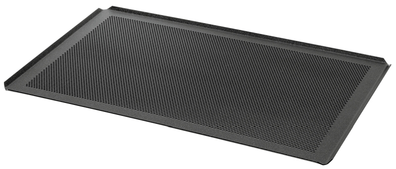 Lochblech in Bäckereinorm 600 x 400 mm aus Aluminium. Dank der innovativen und robusten Antihaftbeschichtung wird ein Anhaften des Backgutes verhindert.
