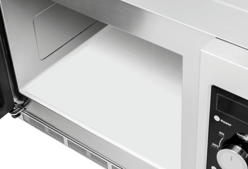 Der extra große Garraum der Mikrowelle ist mit einem Keramikboden ausgestattet. Dieser sorgt für eine gleichmäßige Wärmewirkung, die über die Mikrowellenleistung von 1800 Watt in 6 Stufen reguliert wird. Neben der Leistungsregulierung, kann das Erwärmen und Auftauen von Speisen über den Timer gesteuert werden.