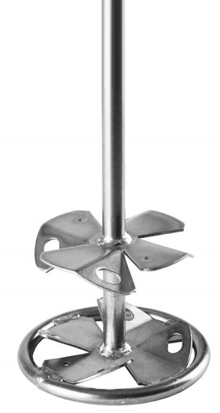 Die heutige Vielfalt an unterschiedlichsten Mischmaterialien erfordert eine große Vielfalt und Weiterentwicklung des passenden Mischwerkzeuges. Das Ergebnis der Optimierung des BERG Rührquirlprogramms ist eine große Auswahl an Rührquirlen in unterschiedlichsten Bauformen. Alle Modelle werden nach neuesten Herstellungsverfahren produziert und extrem stabil verschweisst. Die äußerst widerstandsfähige Verzinkung erhöht den Korrosionsschutz und erhält zugleich eine höhere Abriebfestigkeit. Die Entwicklung der BERG Rührquirle erfolgte in Kombination mit den BERG Rührwerken. Bei der ergonomischen und zugleich praxisrelevanten Entwicklung standen verschiedene Rührquirllängen (bis 740 mm) in Verbindung mit dem Rundumhandgriff der Rührwerke im Fokus. Das Rührquirlsortiment ist in verschiedenen Arbeitslängen erhältlich, um eine optimale, ergonomische und kraftsparende Arbeitsweise anzubieten. SRR SCHEIBENRÜHRQUIRLE Der obere Rührflügel drückt das Mischgut nach unten und verhindert so das Herausspritzen des, Materials. Der untere gegenläufige Rührflügel befördert das Mischgut gleichzeitig nach oben. Durch die Bohrungen im Rührflügel wird die gewünschte Viskosität des Mischgutes schneller und optimaler erzielt. Das Ergebnis: Flüssige, Materialien können schnell, sauber und effektiv vermischt werden. Der Ring wirkt schützend für den Behälter.; AnwendungSMÖGLICHKEITEN: Optimal geeignet zum Mischen von flüssigen, Materialien: z.B. Wandfarben, Dispersionsfarben, Fliesenkleber, Leim, Tapetenkleister, etc. 160 x 600 mm M14-Aufnahme Mischvolumen: 50-90 kg / 50-115 l.
