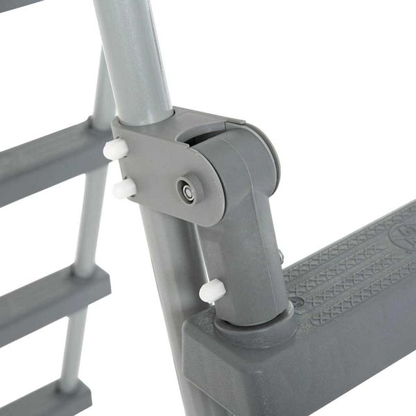 Mit diesem Bestway Power Steel Pool-Set werden Sie viel Spaß mit Familie und Freunden haben. Die runde Form bietet mehr Platz zum Schwimmen. Der stilvolle Pool hat verstärkte Wände aus Tritech-Material, einem verstärkten 3-Lagen-Material, das aus laminiertem, strapazierfähigem PVC und einem Polyesternetz besteht. Dank des hochwertigen Stahlrahmens und der verstärkten Seitenwände ist dieser oberirdische Pool äußerst stabil und langlebig. Zusätzlich ist der Rahmenpool mit einem Seal & Lock System ausgestattet, das eine sichere und zuverlässige Rohrverbindung gewährleistet. Dieser Pool kann schnell und einfach aufgestellt werden. Legen Sie den Pool einfach auf eine ebene Fläche, montieren Sie den gesamten Rahmen und füllen Sie dann den Pool mit Wasser. Mit einem Ablassventil kann das Wasser einfach und schnell abgelassen werden. Die elektrische Filterpumpe ist ein Teil des Wasserkreislaufsystems, wodurch das Wasser sauber gehalten wird. Die antimikrobielle Filterkartusche verhindert, dass Algen, Schimmel und andere mikrobielle Bakterien in Ihrem Pool wachsen. Der ChemConnect-Dosierer pflegt und liefert sauberes, gesundes Poolwasser. Die Poolleiter hilft beim sicheren Ein- und Ausstieg. Die Freisetzung des Spenders liefert einen stabilen Chlorgehalt, der für ein korrektes chemisches Gleichgewicht erforderlich ist.