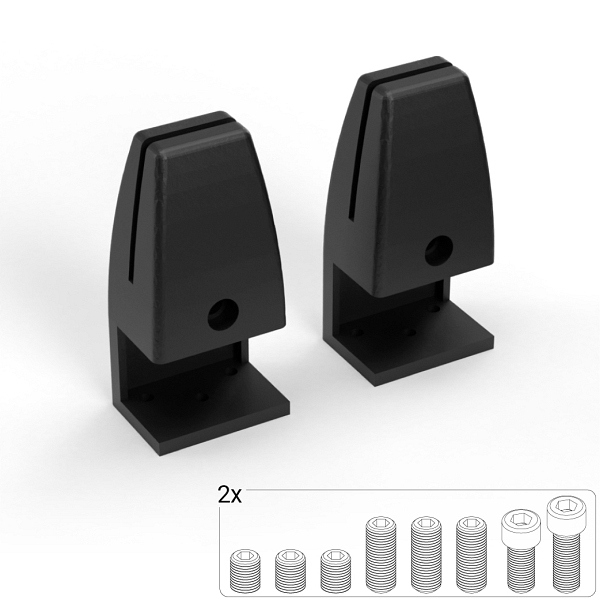 Tischklemmen für AKUSTIX Vario (eco), einseitig, Befestigungsset aus Aluminium Druckguss, Klemmbereich Akustikmodul: 3-20 mm, 1x DIN 912 M6x16 mm, Klemmbereich Tischplatte: 19-25 mm, 1x DIN 912 M6x25 mm, inkl. Madenschrauben: 3x M6x6 mm, 3x M6x12 mm