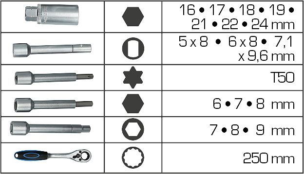 Damit wird ein großer Einsatzbereich abgedeckt. Im praktischen Kunststoff-Aufbewahrungskoffer ist das Spezialwerkzeug jederzeit griffbereit.