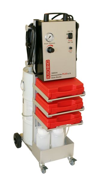 Busching Elektrischer Bremsenentlüfter PLUS SL30, mit ABSAUGSYSTEM, Fahrwagen und Niederdruckprüfung, 100594, 4053615005478