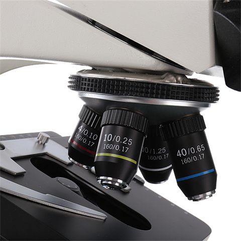 Da das Miscroskop mit achromatischen DIN-Zoomobjektiven (4x, 10x, 40x und 100x Öl) ausgestattet ist, kann mit den beiden 10x Weitwinkelokularen eine Vergrößerung von 40 - 1000x erreicht werden. Da die 100-fache Linse auch für Ölimmersion geeignet ist, können stärkere Vergrößerungen erzielt werden.