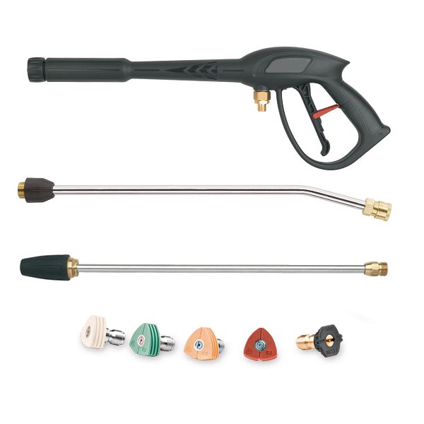 - 5-teiliges Schnellwechsel-Düsen-Set (Punktstrahl 0°, Fächerstrahl 15°/25°/40°, Schaumauftrag)