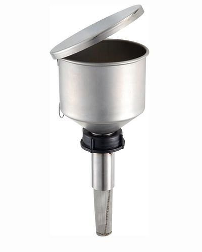 Trichter für Kunststoff-Kanister mit Gewinde H51, ideal zum dosierten Einfüllen von kleinen Flüssigkeitsmengen, korrosionsfrei und resistent gegen aggressive Medien, mit Überfüllsicherung, inkl. Deckel und Flammensperre, für Kunststoffkanister, mit Überwurfmutter, mit Gewinde H51.