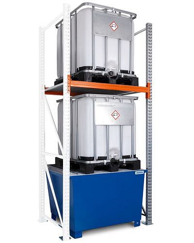 DENIOS Gefahrstoff-Palettenregal, Anbaufeld, 2 Lagerebenen, lackierte Auffangwanne, 1500 x 1300 x 3300 mm, 305415, 4055661032507