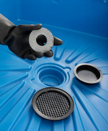 Teilewaschgerät bio.x C100 XL, Grundgerät, für die biologische und lösemittelfreie Teilereinigung, Reinigungssystem zur lösemittelfreien Teilereinigung, besonders stabil und energieeffizient, mit extra großer Arbeitsfläche für besonders breite und schwere Teile, Geräteunterteil und Waschbecken aus Polyethylen (PE), komplett montiert, Betriebsanleitung und CE-Erklärung, elektrische Kompaktsteuerung mit Folientastatur inkl. Energiesparmodus, elektrische Förderpumpe mit ca. 5 l/min Förderleistung, Reinigungseinheit bestehend aus 2 Waschpinseln, Die energieeffiziente Steuerung erwärmt das Reinigungsbad auf angenehme und effektive 41 °C. Leistungsstarke Sensoren erkennen und melden, wenn sich Sediment am Tankboden gebildet hat. Die Entfernung der Sedimentschicht trägt erheblich zur Standzeitverlängerung des Reinigungsbades bei, Traglast: 250 kg bzw. 350 kg bei Verwendung des optionalen Lochblech-Einsatzes, 10 Jahre Geräte-Garantie (gilt nur bei Verwendung mit dem bio.x-Reiniger von DENIOS), Spezielle Mikroorganismen bauen die Öle und Fette biologisch ab und garantieren so eine lange Standzeit der Reinigungsflüssigkeit. Der neue Reinigungstisch bio.x C100 XL ist in seiner Größe und Stabilität einzigartig. Besonders große und sperrige Teile können bequem von einem oder zwei Anwendern zur gleichen Zeit gereinigt werden. Die barrierefreie Arbeitsfläche garantiert dabei maximalen Komfort und gute Zugänglichkeit von allen Seiten.