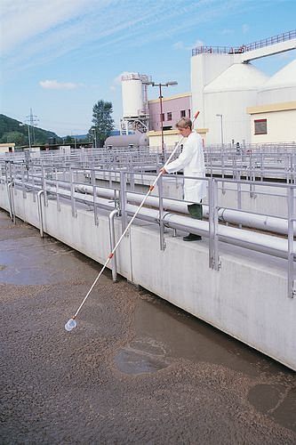 Winkelbecher aus PP, 2000 ml, für Teleskopstangen, zur Probenahme von Flüssigkeiten, Vielfältiges Probenahmesystem mit austauschbaren Werkzeugen (Teleskopstangen, Schöpfbecher, Flaschenhalter), Werkzeuge und Teleskopstange werden mit einer praktischen Schnappverbindung fest verbunden. Für Industrie und Wasseraufbereitung - ideal für die Probenahme aus Becken, Tanks, Schächten, offenen Gewässern etc. Winkelbecher mit variabel einstellbarem Neigungswinkel (bis 90°). Polypropylen.