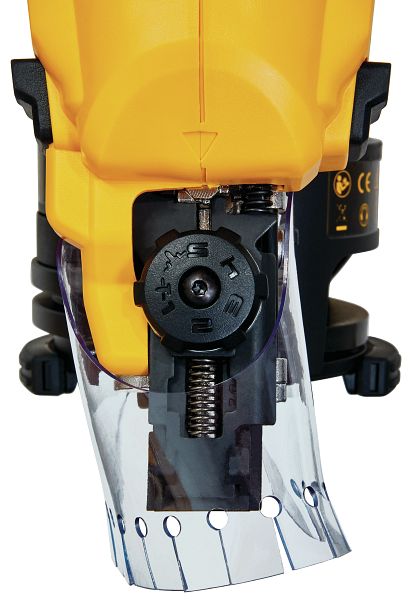 - Präzises Eintreiben der Nägel durch werkzeuglose Tiefeneinstellung mittels Stellrad