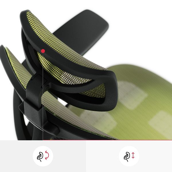 Eine Kopfstütze, die in der Höhe und im Neigungswinkel verstellbar ist. Diese Funktion bietet eine solide Unterstützung für den Nacken, so dass ein schädliches Kippen des Kopfes vermieden wird.