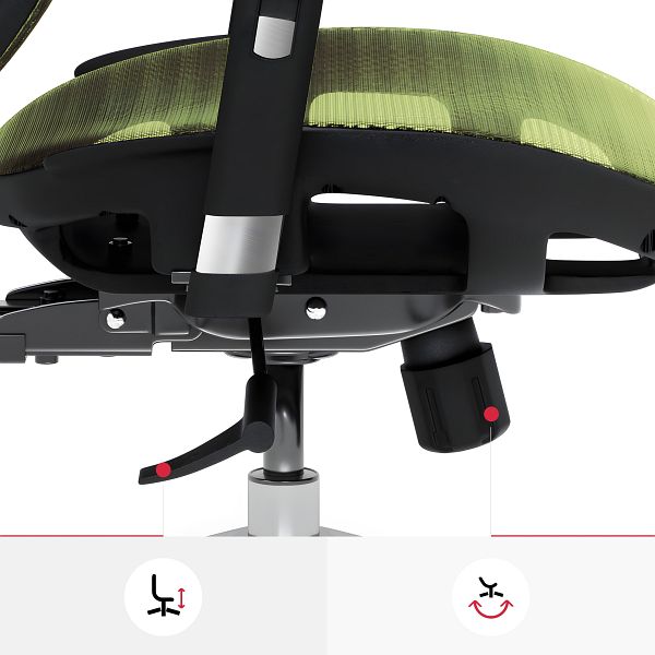 Der Sitz bietet Ihnen eine vertikale, stufenlose Sitzhöhenverstellung, sodass er an Ihre Körpergröße sowie an die Höhe Ihres Schreibtisches angepasst werden kann. Die Mechanik ermöglicht zudem ein entspanntes Schaukeln.