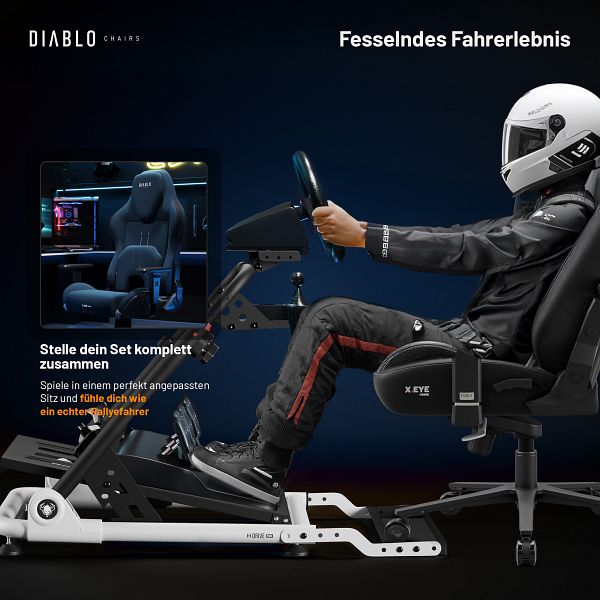 Der Diablo X-Drive Mini ist ein universell kompatibler Lenkradständer für die meisten handelsüblichen Lenkräder. Deshalb befestigst Du Dein Lenkrad mühelos am Ständer und startest sofort in Dein aufregendes Fahrabenteuer. Das Spielerlebnis wird noch realistischer und intensiver – denn der Ständer verfügt über einen integrierten Schalthebelhalter, der das Cockpit eines echten Rennwagens nachbildet.