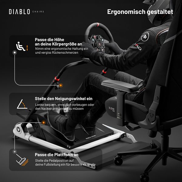 Du willst mehr Adrenalin und noch mehr Gaming-Spaß? Ein Simracing-Ständer ist der ideale Begleiter für anspruchsvolle Spieler, die auf maximale Realitätsnähe setzen. Der X-Drive Mini sorgt dafür, dass nichts stört – und gleichzeitig schützt er Deinen Rücken. Die präzisen Einstellmöglichkeiten verhindern Rückenschmerzen und Verspannungen im Nackenbereich, sodass Du Dich ganz auf das Fahrgefühl konzentrieren kannst. Ein professionelles Racing-Setup von Diablo Chairs ist die perfekte Investition in Deine Gesundheit und Dein Fahrerlebnis.