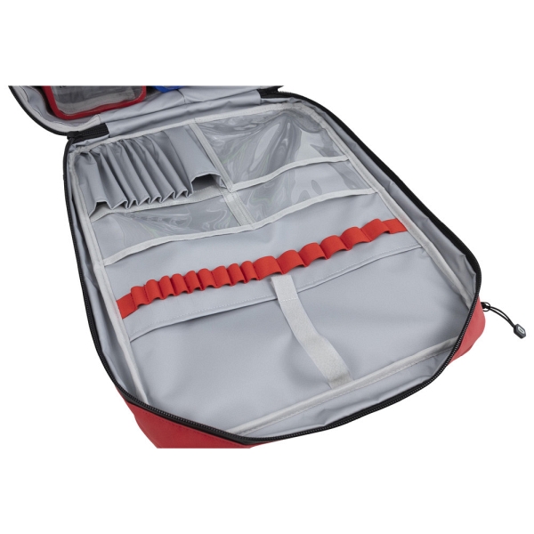 In dem Notfallrucksack können verschiedene Innentaschen in unterschiedlichen Größen und Farben eingeklettet werden. Vier Innentaschen in verschiedenen Farben sind bereits im Lieferumfang enthalten. Der Deckel bietet Platz für Dokumentationen und Kleinmaterial, und ein integriertes Ampullarium für bis zu 12 Ampullen sorgt für Ordnung und schnellen Zugriff auf Medikamente.