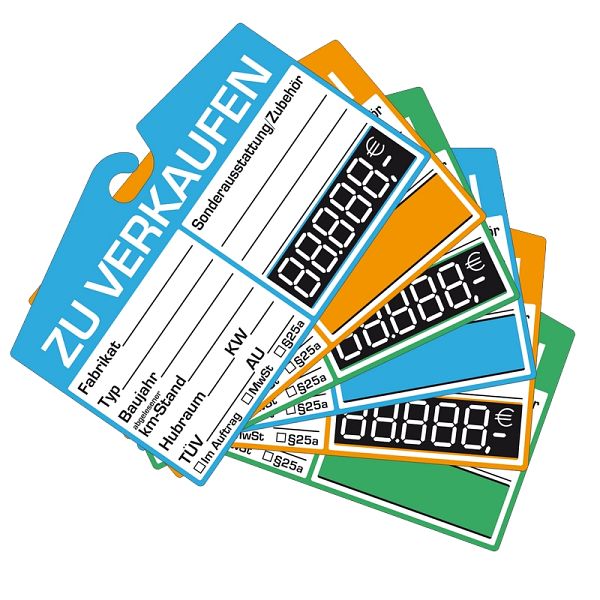 Eichner Verkaufsschild zur Befestigung am Innenspiegel, Grün, Preisfeld: digital, VE: 25 Stück, 9220-00101, 4052301001022