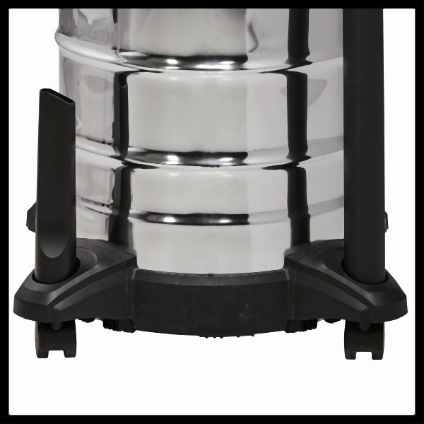 Der Einhell Nass-Trockensauger TC-VC 1930 S ist ein 1.500 Watt starkes Hilfsmittel für tiefgreifende und gründliche Reinigungsaufgaben. Der Nass-Trockensauger ist mit einem rostfreien und stabilen Edelstahlbehälter mit 30 Liter Fassungsvermögen ausgerüstet. Zum einfachen Entleeren des Behälters ist eine Wasserablassschraube integriert. Der Blasanschluss dient dem Ausblasen von schwer zugänglichen Stellen. Vier Rollen sorgen im Betrieb für eine gute Mobilität. Ordnung am Gerät bringen die praktische Zubehörhalterung und die Kabelhalterung. In der Lieferung inklusive ist ein 2,50m-Plastiksaugschlauch (Ø 36mm) mit hohem Luft-/Schmutzdurchsatz + ein 2-tlg. Verlängerungsrohr, Kombi- und Fugendüse sowie Schaumstoff- und Faltenfilter.