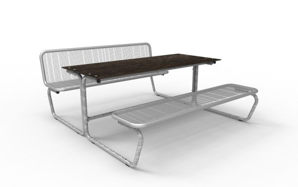 Erlau Sitz-Tisch-Kombination Palma Spektrum Massivtischplatte, mit einseitiger Rückenlehne, RAL 9006 Weißaluminium, 5420831, 4008244390754