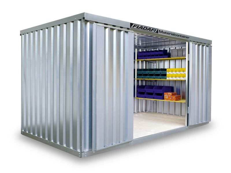 FLADAFI Materialcontainer MC 1400, verzinkt, zerlegt, Holzfußboden, Doppelflügeltür (symmetrisch) auf der 4 m Seite, F14200301