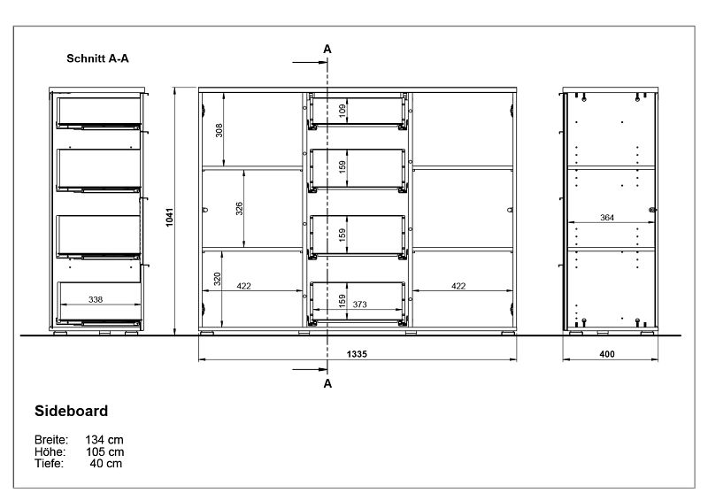 - Material Korpus: Spanplatte, melaminharzbeschichtet