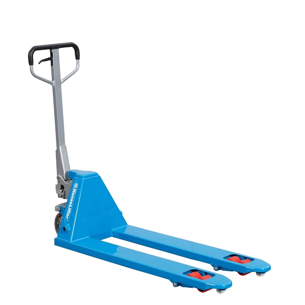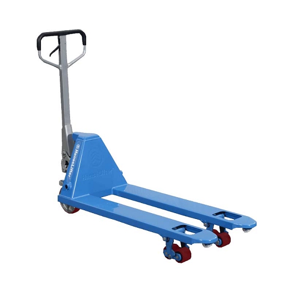 Der Hubwagen BF-SL spart wichtige Zeit beim Arbeiten mit Paletten. Er ist mit seinen verschiedenen Gabellängen von 800, 950 und 1.150 mm für fast jedes Lager geeignet. Die Tragkraft beträgt 2.500 kg und auch die übrigen Maße entsprechen denen eines Standard Hubwagens. Grundsätzlich ist der BF-SL mit Rollen aus Polyurethan ausgestattet. Diese sind geräuscharm, abriebfest und besitzen eine starke Bodenhaftung.