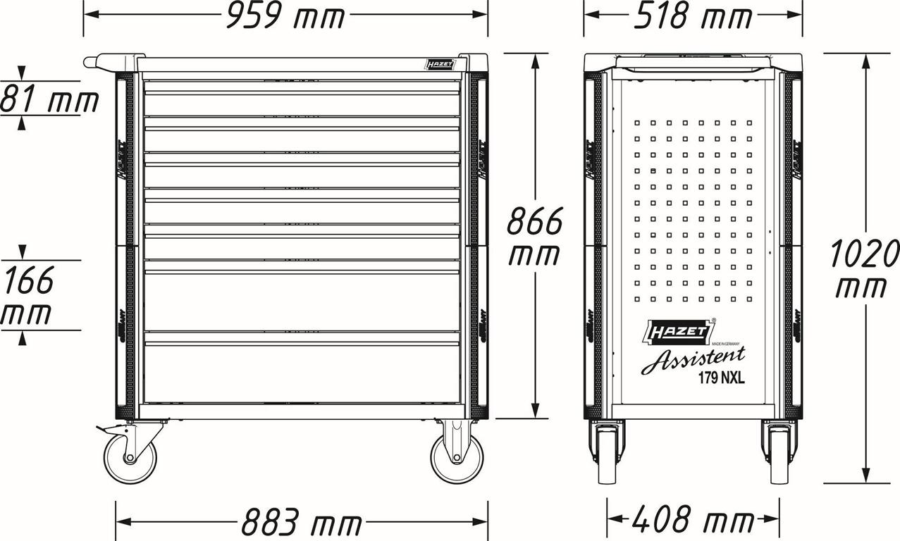 Hazet Werkstattwagen Assistent, extra breit, Edelstahl-Arbeitsplatte, 8 Schubladen, 179NXL-8, 4000896215218