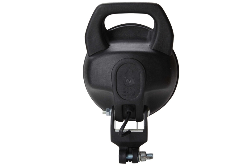 - Das schwarze Gehäuse dieses robusten Arbeitsscheinwerfers besteht aus glasfaserverstärktem Kunststoff.