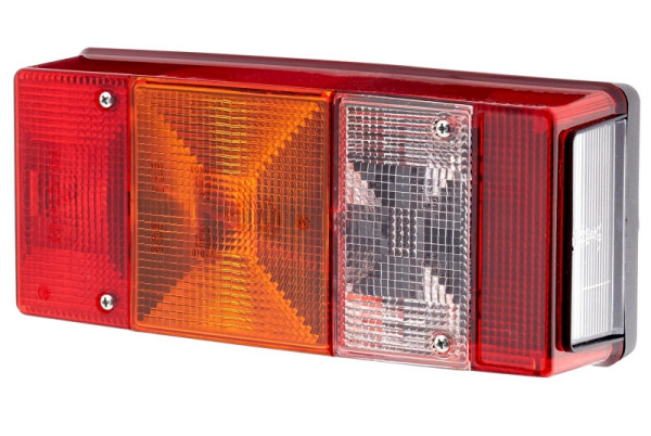 - Die Heckleuchte verfügt über 5 Leuchtefunktionen: Brems- / Schluss- / Blink- / Rückfahr- / Kennzeichenlicht – Schluss-, Brems- und Nebelschlusslicht rot, Blinklicht gelb, Kennzeichenlicht glasklar