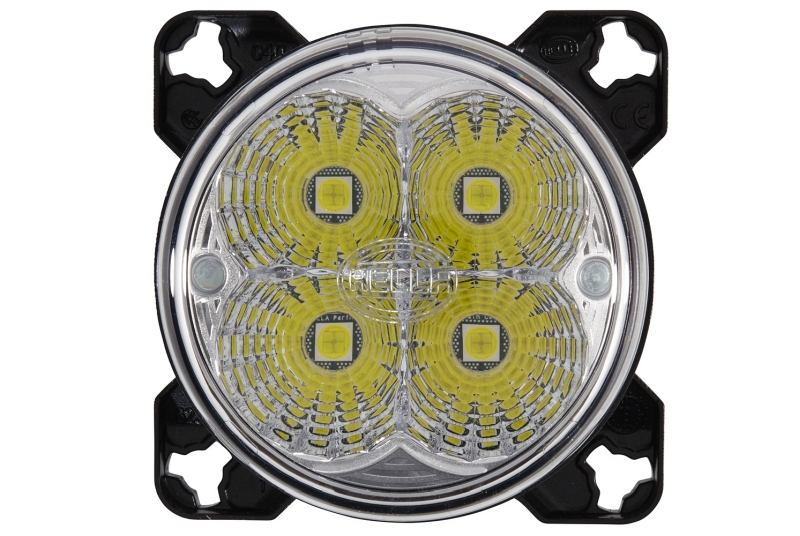 Der Modul 90i LED ist ein kompakter Einbauarbeitsscheinwerfer mit starker Lichtleistung. Das Einbaugehäuse wurde so dimensioniert, um die bereits existierende 90er Modul Serie von HELLA um einen LED-Arbeitsscheinwerfer zu ergänzen. Das schwarze Aluminiumgehäuse ist mit Kühlrippen versehen, die für die nötige Wärmeabfuhr der vier Hochleistungs-Multichip-LEDs sorgen. Zusätzlich schützen Temperatursensoren den Arbeitsscheinwerfer vor Überhitzung. Nur dadurch kann die lange Lebensdauer der LEDs und sicheres Arbeiten bei Nacht gewährleistet werden. Der Modul 90i LED kann dank seiner starken Lichtleistung von 3.800 Lumen Xenon-Arbeitsscheinwerfer ersetzen – und das bei nur 36 Watt Leistungsverbrauch. Dadurch eignet sich dieser Arbeitsscheinwerfer ideal für den Einsatz an Fahrzeugen mit Batteriebetrieb sowie an Fahrzeugen, deren Lichtmaschine bereits schwer belastet wird. Das Licht wird mit einem speziell entwickelten Multi-Facettenreflektor verteilt, der für eine homogene Ausleuchtung sorgt. Der Scheinwerfer kann sowohl mit 12, als auch mit 24 Volt betrieben werden. Die integrierte Elektronik schützt das Gerat bei Verpolung und gewährleistet konstante Helligkeit selbst bei einer schwankenden Betriebsspannung von 9 bis 32 Volt. Das Licht des LED-Arbeitsscheinwerfers ist dem Tageslicht sehr ähnlich. Dies bewirkt, dass sich Farben in der Dunkelheit deutlicher unterscheiden und somit dem menschlichen Auge die Sinneswahrnehmung erheblich erleichtert wird. Dadurch wird einer raschen Ermüdung der Augen beim Arbeiten in der Nacht vorgebeugt.