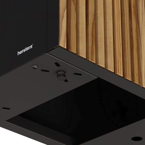 Der hohe Pflanzkasten ist aus feuerverzinktem und pulverbeschichtetem Stahl gefertigt, was ihn beständig gegen Witterung macht. Die vertikal angeordneten Holzleisten verleihen dem metallischen Kubus eine moderne und natürliche Ästhetik, die perfekt zur zeitgenössischen Architektur passt.