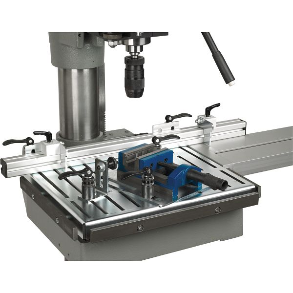 - Erweiterung der Aufspannplatte nach links, rechts oder vorne durch optionale Tischverlängerung möglich, einfache Montage durch Einhängen an den seitlichen Befestigungsschienen