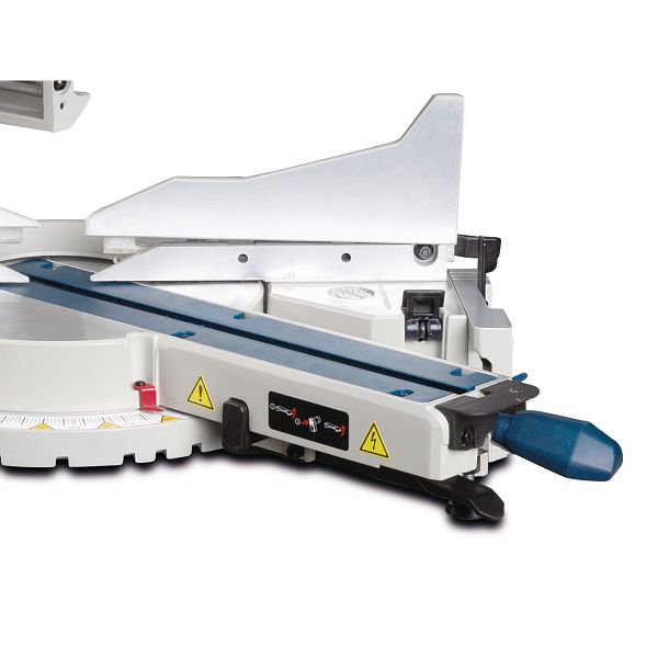 - Beidseitige Verlängerung der Werkstückauflage mit Klappanschlägen für repetitives Arbeiten