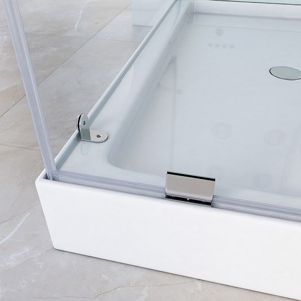 Die "Design" Dampfduschkabine ist ein wahres Multifunktions- und Raumsparwunder. Verliere zum Beispiel nach einem mühsamen Arbeitstag deinen Stress bei einem angenehmen Dampfsaunagang (bis 60 °C einstellbar), bei dem du garantiert ins Schwitzen kommst. Unsere "Design-Serie" verfügt außerdem über die Regenbrausenoption, bei der das Wasser wie ein lauwarmer Tropenregen aus dem Deckenhimmel rieselt. Eine entspannte Rückenmassage (8 Hydrojets) mit gleichzeitigem Lauschen deines Lieblingsradiosenders ist bei vielen Kunden beliebt. Selbstverständlich ist auch der gewöhnliche Gebrauch über eine Handbrause, die über die befestigte Duschstange justierbar ist, möglich. Die 7 blauen LED-Lichter im Deckenhimmel machen den "Wohlfühlfaktor" vollkommen. Genieße die exotische Duschatmosphäre. Über das integrierte Computerdisplay kannst du die Lautstärke und Senderwahl stufenlos regeln. Sowohl die Kombination aus 6 mm klarer und weißgetönter ESG-Vollverglasung aller Komponenten als auch die Aluminium-Rahmenkonstruktion stehen für den durchweg hohen Qualitätsstandard. Optisch wird durch die helle Konzeption des Designs mehr Räumlichkeit geboten. Die auf fast jeden Untergrund anzupassenden höhenverstellbaren Füße der Duschwanne sind ein weiteres herausragendes Feature, das diese Dusche von anderen hervorhebt.