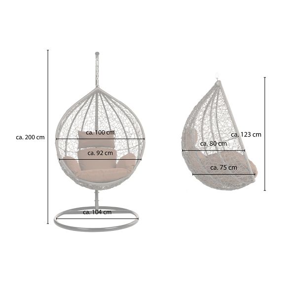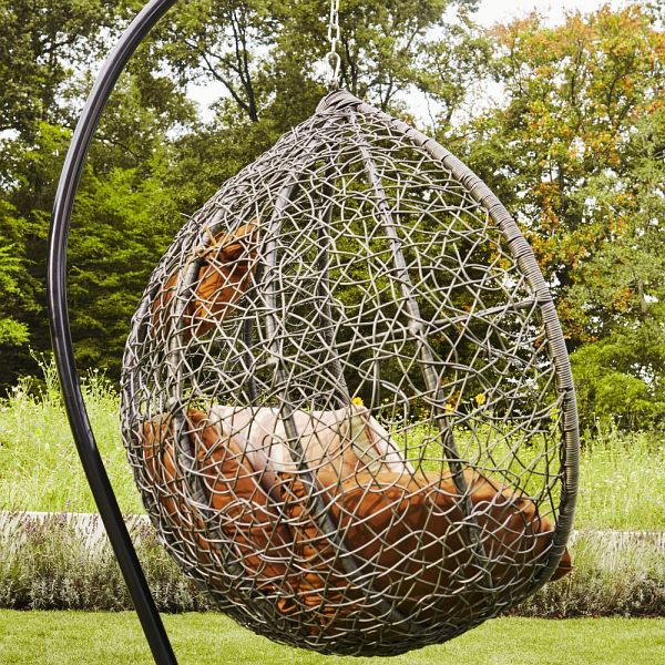 Der freischwingende Hängesessel ist äußerst strapazierfähig und wetterbeständig. Elegant geformt und in einem grauen Ton gehalten, passt er in jedes Ambiente. Das Metallgestell ist standsicher und extra stabil ausgeführt, während die gefederte Aufhängung diesen Sessel noch komfortabler macht. Einmal Platz genommen, wirst du diesen Hängesessel nicht mehr missen wollen.