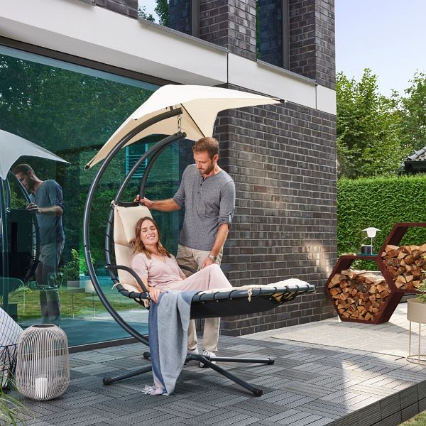 Ob Sie in Ruhe ein Buch lesen, einen Film gucken oder einfach ein bisschen "rumhängen" wollen, in unserer Schwebeliege können Sie das alles und noch viel mehr. Egal ob drinnen oder draußen, in der Liege San Remo sind Sie bestens aufgehoben. Die Schwebeliege wird Dank des modernen Designs das neue Highlight ihres Gartens, Ihrer Terrasse oder Ihres Balkons. Nutzen Sie den Platz aus und machen Sie es sich gemütlich. Mit den leichten Schwingungen versetzt Sie unsere Schwebeliege in einen angenehmen Zustand der Ruhe. Lassen Sie sich einfach treiben.