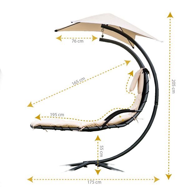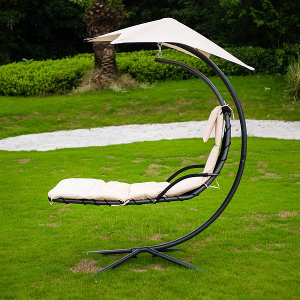 Die freischwingende Schwebeliege ist äußerst strapazierfähig und wetterbeständig. Dank der bequemen, ergonomisch geformten Liegefläche, sowie des weichen Kissens, werden Sie einen erstklassigen Komfort genießen. Das Metallgestell ist standsicher und extra stabil ausgeführt. Einmal Platz genommen, werden Sie diese Schwebeliege nicht mehr missen wollen