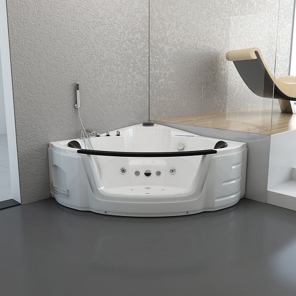 Wenn du ein Produkt suchst, das keine Wünsche offen lässt, ist dieser geräumige Whirlpool die perfekte Lösung für dich. Mit diesem Ziel vor Augen haben wir die Laguna-Serie eigens konzipiert. Trotz der einmaligen Kompaktmaße von 135 x 135 x 65 cm kann sie in fast jeder Nische aufgestellt werden. Auf Stellflächen unter 140 cm passten bisher nur Duschkabinen oder Duschabtrennungen. Mit diesem Whirlpool hast du nun eine zusätzliche Möglichkeit, diesen Platz zu nutzen. Die besonderen Abmaße bieten weiterhin Badevergnügen zu zweit. Die beiden Kopfstützen sind ergonomisch geformt und sorgen für optimalen Liegekomfort. Die vier verstellbaren großen Whirlpooldüsen, zehn Bodyjets und acht Airjets sorgen für das perfekte Entspannungserlebnis. Durch die zwei 360 Grad Düsen an der Fensterseite wird die fehlende Rotation in dem Whirlpool eingeführt. Du kannst den Whirlpool natürlich auch ganz normal als Badewanne verwenden. Der separate Wanneneinlass, unabhängig von der Handbrause oder dem Wasserfall, ermöglicht ein schnelles Badeerlebnis. Das moderne Design in Kombination mit guter Funktionalität macht unseren Topseller komplett. Lehne dich zurück und genieße einen belebenden Whirlpoolgang, während die innovative Farblichttherapie das Wasser in drei sanften und beruhigenden Farben leuchten lässt. Der in der Wanne eingefasste Sitz gewährleistet den ergonomischen Gebrauch, zum Beispiel auch für ältere Personen. Die integrierte Heizung des Whirlpools sorgt dauerhaft für eine angenehme Temperatur.