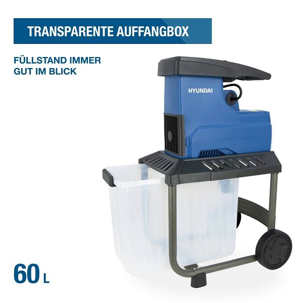 Die großzügige, transparente 60L Auffangbox ermöglicht es, das Entleeren selten durchführen zu müssen. Mit der transparenten Box haben Sie stets einen klaren Überblick über den Füllstand des Häckselguts, was die Arbeit noch schneller macht.